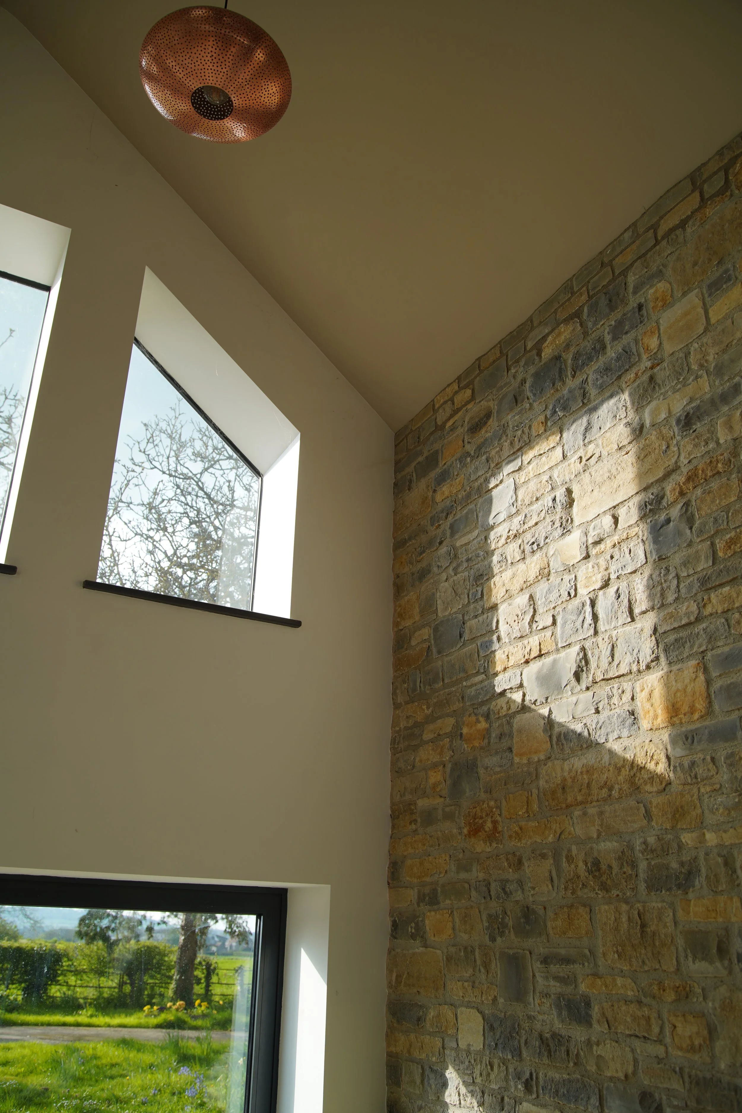 Full renovation of a historic barn house. New front gable extension added with a mezannine created internally with solar panels and air source heat pump added to the exterior, and a new stone staircase to the barn-converted studio.